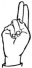 На ћирилици написано КРСТИМИР ЧАЈЕТИНАЦ састоји се из 17 слова [?]. Исписано ћириличном једноручном азбуком за глувонеме: